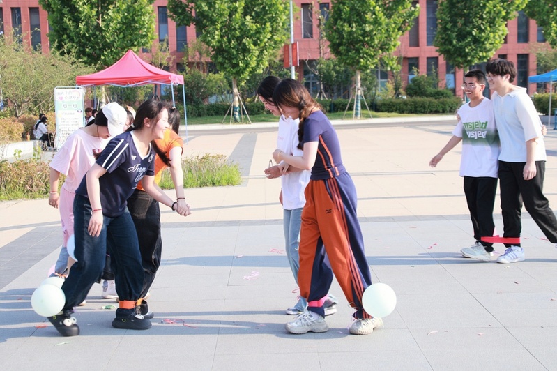 活动现场分为趣味互动区与情感体验区两大特色区域,近千名学生在轻松愉快的氛围中开启一场别开生面的心灵之旅。在趣味互动区,团队协作挑战和创意竞技游戏让同学们在欢声笑语中增进默契,释放压力。“两人三足踩气球”的默契协作、“乒乓球拍传递”的专注神情、“表情符号猜词”的思维碰撞以及“沙包投掷”的全情投入,同学们在默契配合与竞技博弈中释放情绪,欢笑声此起彼伏。精心设计的游戏不仅提高了同学们的团队协作能力,更在无形中帮助同学们释放压力、放松心情。