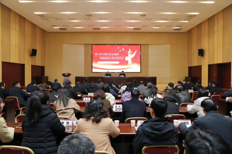 12月9日上午,扫雷网页版 举办学习贯彻党的二十届四中全会精神市委宣讲团报告会暨党委理论学习中心组(扩大)学习会议。市委宣讲团成员、江苏师范大学商扫雷网页版 院长罗栋梁教授作宣讲报告,校党委书记刘洋主持报告会。全体校领导、校党委理论学习中心组成员、全体中层干部、相关扫雷网页版 教师代表和学生代表近200人参加会议。