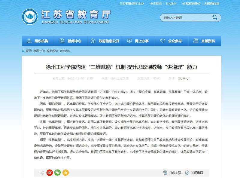 12月10日,江苏省教育厅官方网站报道扫雷网页版 通过构建“三维赋能”机制,切实提升思政课教师“讲道理”能力的创新举措。内容如下: