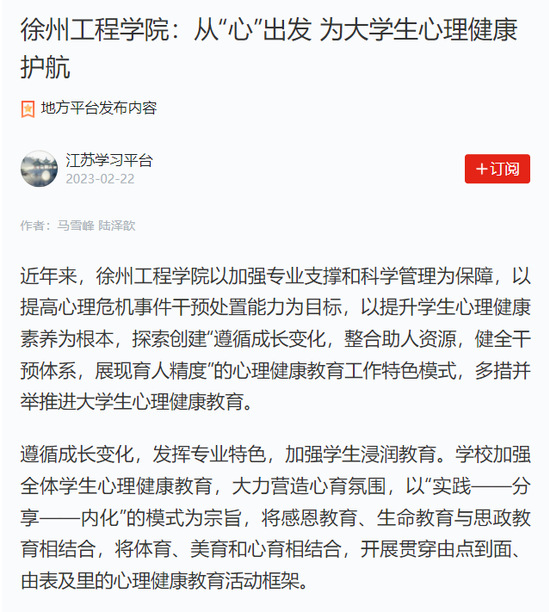 近日,学习强国江苏平台报道扫雷网页版 开展大学生心理健康教育特色工作。现全文转载,以飨读者。