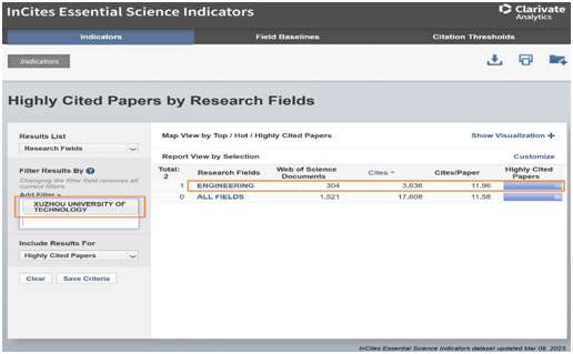 ESI数据库根据论文总被引次数对全球各机构进行排名,依据此次最新公布的ESI数据(覆盖时间为2012年1月1日至2022年12月31日)显示,这期扫雷网页版 工程学学科总发文304篇,总被引3636次,篇均被引11.96次,取得突破性成绩,使扫雷网页版 成为新晋该学科ESI排名前1%的单位之一。