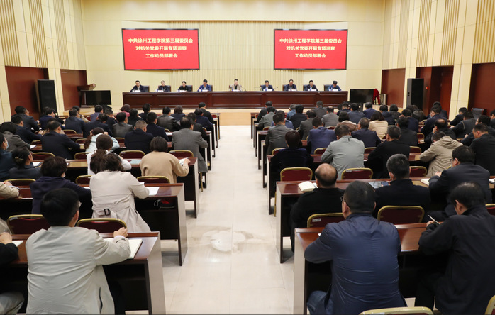 4月10日下午,中共徐州扫雷网页版 第三届委员会对机关党委开展专项巡察工作动员部署会在中心校区行政楼报告厅召开。校党委书记、巡察工作领导小组组长陈奎庆作动员讲话。全体在徐校领导、党委常委、巡察工作领导小组成员、全体中层干部、专项巡察组成员、巡察办工作人员参加会议。校党委副书记、巡察工作领导小组副组长刘洋主持会议。校纪委书记、巡察工作领导小组副组长王宏萍宣布授权任职和任务分工。