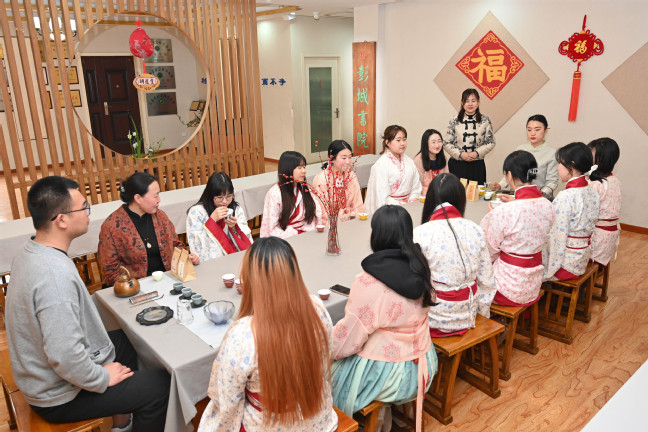 在彭城书院,留学生们穿上汉服,感受礼仪文化。在古乐文化课堂上,他们练习古筝抚琴姿势,弹奏歌曲;在中华榫卯课堂上,他们感受到榫卯结构的精妙之处,感悟了“惊艳世界的力学之美”;在茶文化课堂上,同学们被茶艺老师的优雅动作和精湛技术深深吸引。活动还邀请彭城书院院长汉风先生授课。