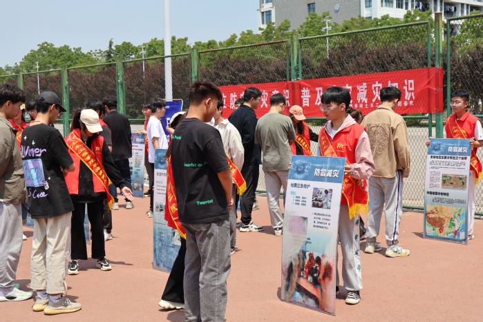 聚焦校园 普及安全:12日上午,学生志愿者在校园内发放安全宣传资料,他们用丰富易懂的专业知识,通过幽默风趣的语言,向师生宣传防震减灾和避险自救技能,进一步增强师生防震减灾的安全意识。
