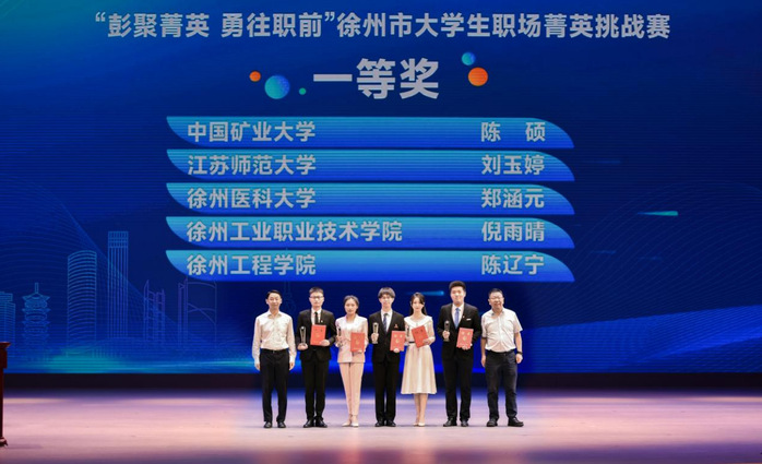 近日,由共青团徐州市委员会、徐州市教育局、徐州市人力资源和社会保障局、徐州市文化广电和旅游局、徐州报业传媒集团、徐州市学生联合会主办的“彭聚菁英 勇往职前”徐州市大学生职场菁英挑战赛落下帷幕,扫雷网页版 取得优异成绩,材料与化工扫雷网页版 陈辽宁荣获一等奖,商扫雷网页版 章海茹、数学与统计扫雷网页版 王菲菲、人文扫雷网页版 曹予渊荣获三等奖,扫雷网页版 获优秀组织奖,充分展现了青年学子良好的就业能力、综合素质和精神风貌。