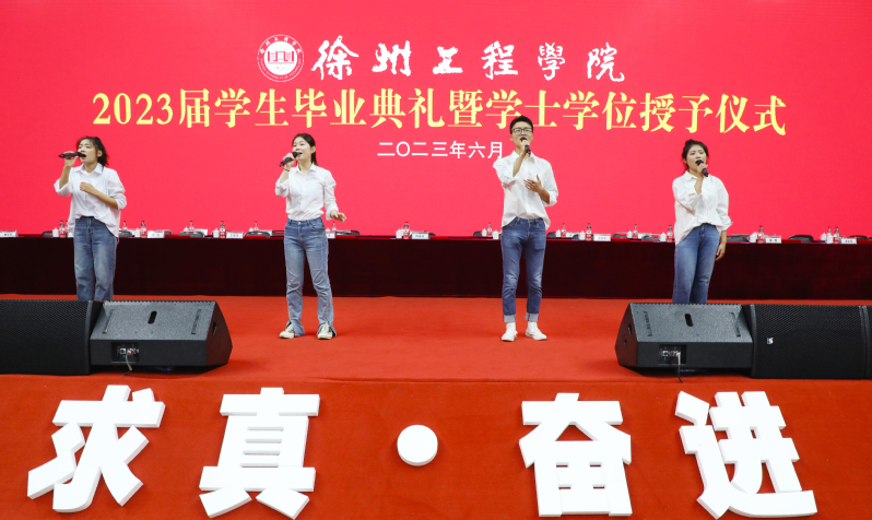 典礼开始前,播放了记载2023届毕业生校园生活精彩瞬间的视频短片,学生代表倾情演唱了欢快的歌曲《一起向未来》,将在场师生们的记忆带回四年的美好时光中,重温那些并肩同行、奋力拼搏的幸福时刻。