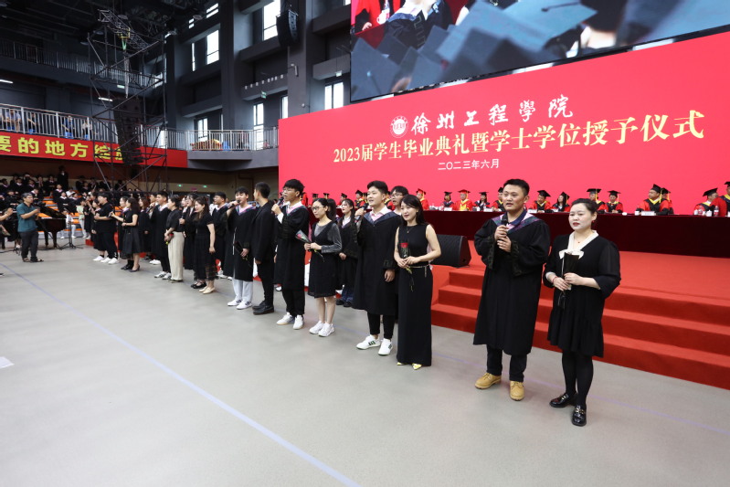 师范扫雷网页版 庄妍老师作为教师代表发言,她希望所有毕业生志存高远、脚踏实地,聆听时代的声音,把握时代的脉搏,让激昂的青春与奋进的时代“双向奔赴”。材料与化学扫雷网页版 刘东升同学代表毕业生发言。他重温了在徐工院求学的美好记忆,勉励同学们要树立鸿鹄之志,练就过硬本领,争做时代先锋,以拳拳赤子之心谱写辉煌的人生华章。