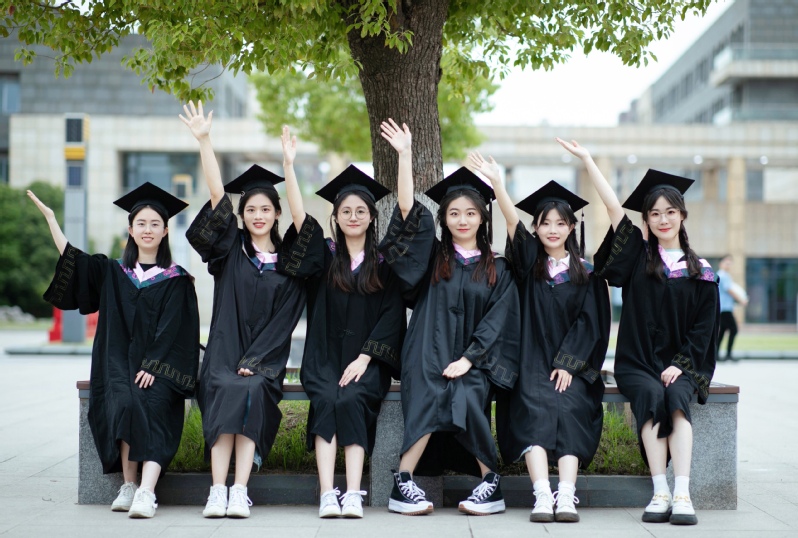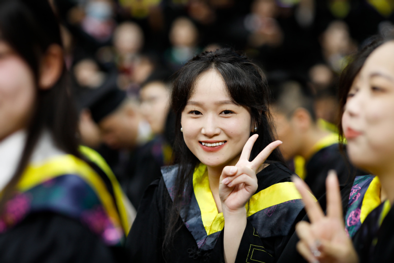 在欢快的乐曲与热烈的掌声中,全体校领导、校党委常委为2023届毕业生代表颁发学位证书并行拨穗礼。