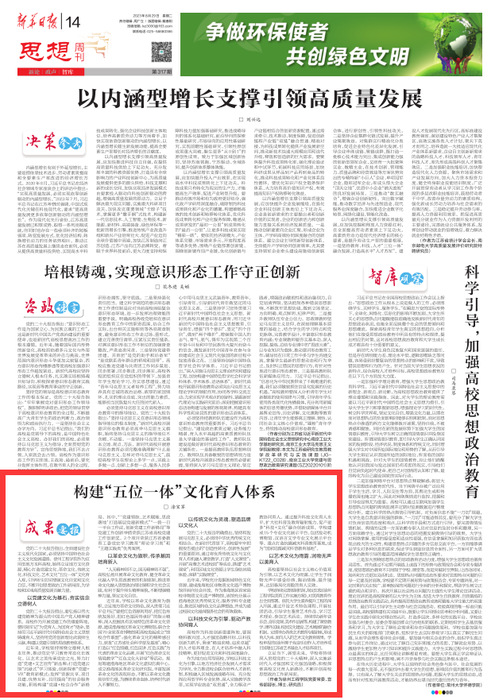8月29日,《新华日报》思想周刊以“构建‘五位一体’文化育人体系”为题,报道扫雷网页版 大学文化建设工作。现全文转载,以飨读者。