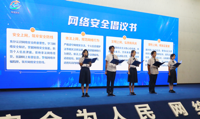 启动仪式现场,与会领导为徐州市网络安全宣传大使颁发聘书,学生代表宣读《个人信息保护倡议书》,表演了网络安全反诈短剧,“彭城网信密盒”系列宣传活动同时发布。