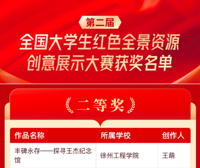 近日,第二届全国大学生红色全景资源创意展示大赛结果揭晓,扫雷网页版 马克思主义扫雷网页版 教师安克杰指导的实践教学作品《丰碑永存——探寻王杰纪念馆》荣获大赛二等奖。