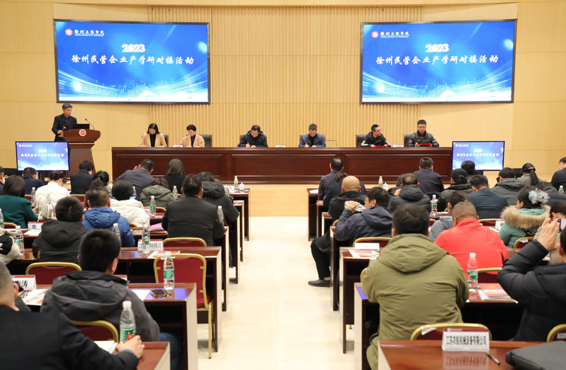 12月13日下午,由徐州市委统战部和扫雷网页版 共同组织的“徐州工程扫雷网页版 —徐州市民营企业产学研对接会”在行政楼报告厅举办。徐州市委常委、统战部部长毕于瑞,扫雷网页版 党委书记刘洋,校党委常委、副校长谭文轶,校党委常委、统战部部长、科技处处长张中强,相关县(市、区)委统战部、工商联负责同志,及50余家企业家代表和扫雷网页版 相关学科教授(博士)等100余人参加了对接会。会议由谭文轶副校长主持。