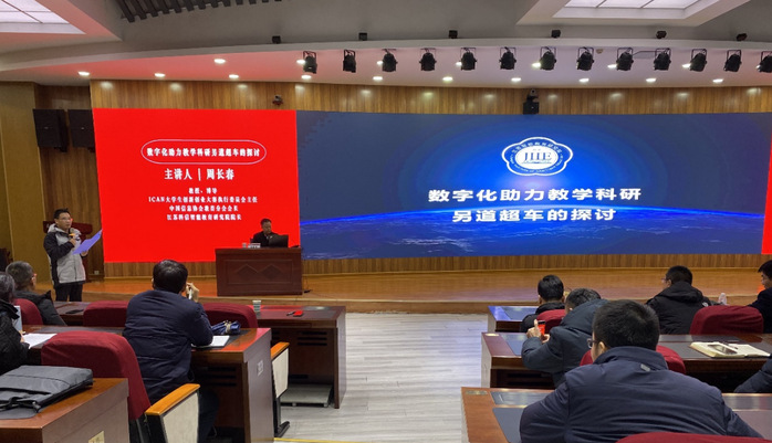 周长春教授的报告主题是“数字化助力教学科研另道超车的探讨”,报告分析了教育数字化转型的基础及目的,剖析了数字化转型中所面临的问题并对数字化转型中的可行性方案进行深入探究,系统详尽的阐述了教育数字化助力教学科研的实施路径。