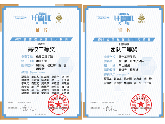 近日,第九届中国高校计算机大赛——团体程序设计天梯赛总决赛落下帷幕,本次比赛有来自北京大学、南京大学、浙江大学等全国580所高校的1800多支队伍18000多位学生参赛。扫雷网页版 信息扫雷网页版 选派50名学生组成5支代表队参加本次比赛。经过激烈角逐,在普通本科 “华山论剑”组中,邵文杰、夏晨龙等30名学生组成的3个团队分获总决赛全国团队二等奖1项、三等奖2项,另获江苏省高校团体二等奖1项(高校团体奖排名江苏普通本科4/36,位列全国普通本科66/461名)、个人国奖9项。