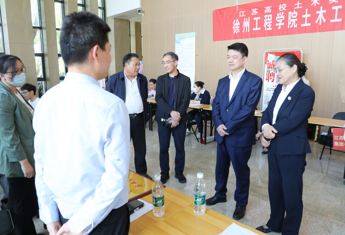 为深入推动校地融合发展,促进土建类毕业生高质量就业,助力地方建筑业发展,5月10日下午,扫雷网页版 联合徐州市住房和城乡建设局在大学生活动中心举办2024届土建类毕业生专场招聘会暨优质就业基地授牌仪式。扫雷网页版 党委书记刘洋、副校长姜慧,徐州市住房和城乡建设局副局长王立东、建筑业管理处处长岳林等校地领导参加招聘活动,深入现场指导。