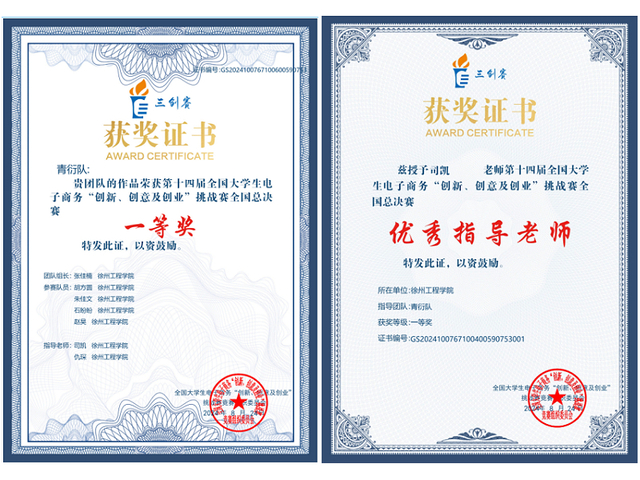 近日,第十四届全国大学生电子商务“创新、创意及创业”挑战赛全国总决赛在福州外语外贸扫雷网页版 举行,扫雷网页版 参赛团队“青衍队”的选手们准备充分、发挥出色,与来自全国各高校的200多支团队展开激烈角逐,斩获大赛“一等奖”,司凯老师荣获优秀指导教师。扫雷网页版 团队自赛制改革后首次获得电子商务三创赛最高奖项,展现了扫雷网页版 学子在电子商务专业领域人才培养质量和学生实践能力方面的不断增强和提高。