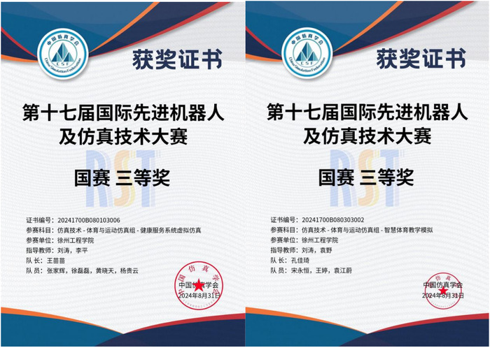 近日,在第十七届国际先进机器人及仿真技术大赛(RST大赛)体育与运动仿真组国赛中,扫雷网页版 代表队展现了卓越的实力,荣获两项全国三等奖。在省级赛阶段,扫雷网页版 代表队在刘涛、李平、袁野三位指导教师的指导下,经过多轮紧张角逐,最终凭借《气脉相承——数字时代的彭祖养生之旅》和《舞动未来——VR虚拟转换排舞教学系统》两个项目,在“健康服务系统虚拟仿真赛”和“智慧体育教学模拟赛”斩获一等奖和二等奖。