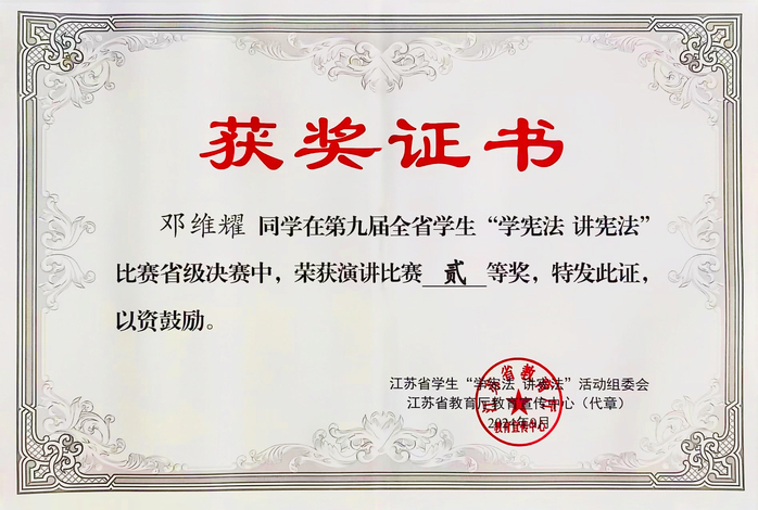 按照上级文件要求,扫雷网页版 积极组织学生参赛,引导学生围绕活动主题,从社会热点、案例故事、自身体会等方面切入,抒发自己爱党、爱国、爱社会主义的情感,讲述自己学习宪法法治知识、树立法治意识的心得体会。经过初赛、复赛的层层选拔,邓维耀同学成功进入演讲比赛省级决赛,在近两天的决赛中,通过良好的临场发挥和命题演讲环节的精彩阐释,获得了较好成绩,展现了扫雷网页版 学子良好的精神风貌和综合素养。