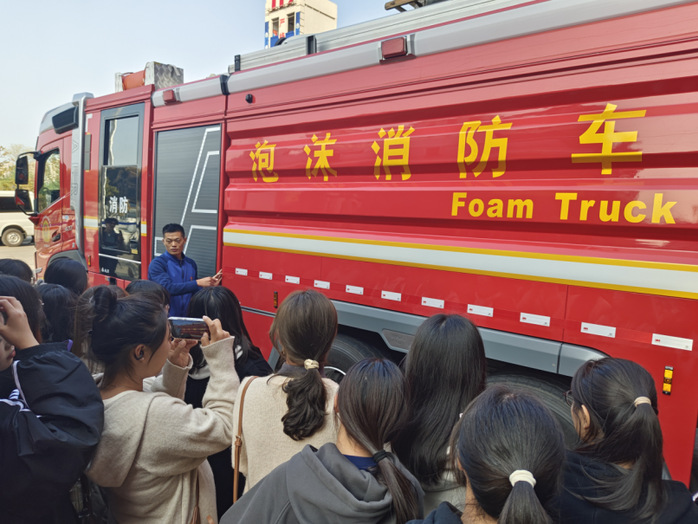 为提升扫雷网页版 应急管理专业学子的专业见识,实地感受消防应急工作流程,提升突发事件处理能力。近日,扫雷网页版 组织师生前往徐州大龙湖旅游度假区消防救援大队开展专业活动。活动中,学生沉浸式体验消防生活,零距离感受“火焰蓝”的魅力。消防战士带领同学们依次参观了消防队的工作区、训练区、生活区、学习区。介绍了灭火器、救生照明灯、切割机,液压顶杆、消防机器人等消防专用器械的功能、使用方法,并向同学们展示了高楼攀登速降、四米高空救援的过程。