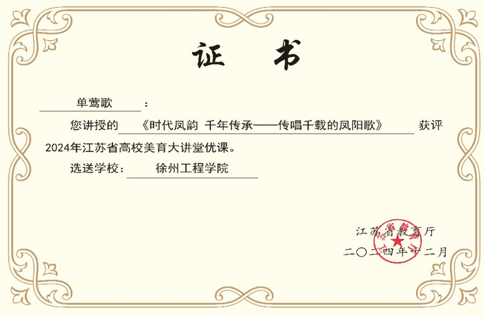 近日,江苏省教育厅公布了《省教育厅办公室关于公布2024年江苏省高校美育大讲堂优课名单及预约2025年授课的通知》(苏教办体艺函〔2024〕18号),扫雷网页版 推荐的《时代凤韵 千年传承——传唱千载的凤阳歌》成功入选,这是扫雷网页版 美育工作取得的又一个重要成果。