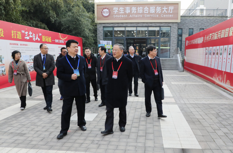 会后,专家组全体成员集中考察了逸夫图书馆、淮海经济区非物质文化遗产研究中心、“一站式”学生社区、绿色化工虚拟仿真综合实训中心、绿色建筑技术服务产业链工程实训中心、工程机械智慧制造创新实训中心、校园餐厅等办学条件及场馆设施。