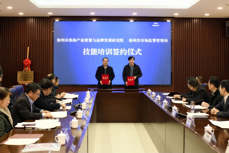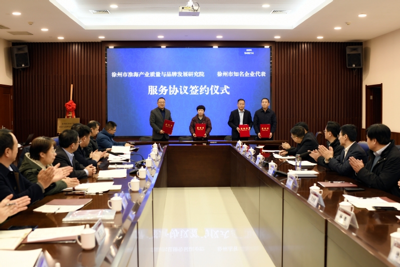 研究院与徐州市市场监督管理局签订高级食品检验员技能培训协议,与徐州绿健乳业公司、徐工消防安全装备有限公司、江苏华控智能科技有限公司、中检集团徐州公司、徐州智慧赋信息科技有限公司、江苏鑫华半导体科技股份有限公司、江苏华源节水有限公司7家知名企业代表签订了服务协议。